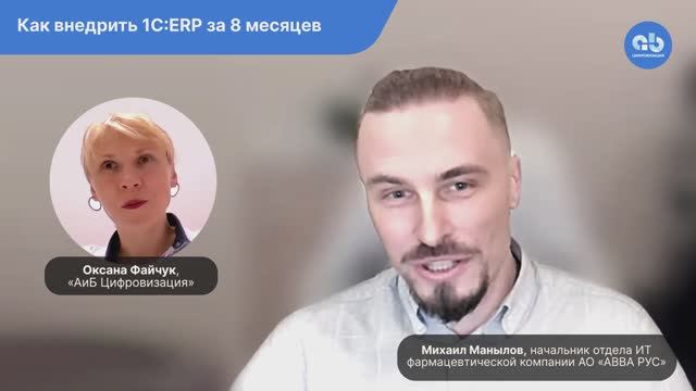 23 апреля АО «АВВА РУС» закрыла первый квартал в ERP. Было автоматизировано 300 рабочих мест в головной организации и производственном филиале [Общая численность организации – 700 человек.] C какими трудностями столкнулось предприятие при переходе с «1С:УПП» на «1С:ERP» – в 26-минутном интервью руководителя ИТ. 00:00 – Причины перехода на ERP-систему 00:30 – Начало промышленной эксплуатации. Почему обучение не было эффективным 00:55 – Сроки и план проекта. Одновременно внедрялись все десять блоков системы. Доработки первой и второй очереди 01:28 – Неприятие новой системы. Ожидания. Отдел закупок 02:48 – Работа в двух системах 03:28 – Расчёт себестоимости: разница расчётов в старой и новой системе 04:34 – Проблемы с номенклатурой. Серии, виды, реквизиты 08:19 – Сложности с настройкой прав доступа 09:16 – Особенности фармацевтической отрасли 11:25 – Проблемы с автоматической нумерацией серий 12:26 – Цикл от заказа до готовой продукции 13:13 – Модуль продаж в ERP 13:43 – Планирование производства 15:33 – Альтернативные замены материалов 17:37 – Внедрение ERP и его эффекты 18:38 – Сменно-суточное задание 20:05 – Ожидания от проекта 22:19 – Функциональные разрывы 22:48 – Архитектура ИТ. 1С:ЗУП, 1С:ТОиР 24:14 – Количестве сотрудников, участвовавших во внедрении 24:26 – Подготовить команду 25:22 – Задачи пользователей и поддержка 25:38 – Перенос данных и решение оставшихся вопросов 26:42 – Требования к оборудованию. Сервера с хранилищем данных. Виртуализация 27:36 – Рекомендации по переходу на ERP 28:42 – Подготовка к проекту ==== Проведём от экспертизы – до успешного результата. Осуществляем: 1. Внедрение продуктов «1С» от простых до самых сложных, 2. Поддержку, 3 Аутстафф (поможем найти подходящих специалистов, обучим сотрудников). Полезные статьи по особенностям 1С-автоматизации: https://aibcifra.ru/category/news/ Мы на связи: +7 (495) 120-40-02 Пишите: info@aibcifra.pro ➡️ Сайт: https://aibcifra.ru/ ➡️ Телеграм: https://t.me/aibcifra/ ➡️ ВКонтакте: https://vk.com/aibcifra/ ➡️ Дзен: https://dzen.ru/aibcifra/ ➡️ Rutube: https://rutube.ru/channel/429892/ ➡️ YouTube: https://www.youtube.com/@chestno_pro_1C_ERP/ #аибцифровизация #1СERP #1СЕРП #внедрение1СERP #внедрение1СЕРП