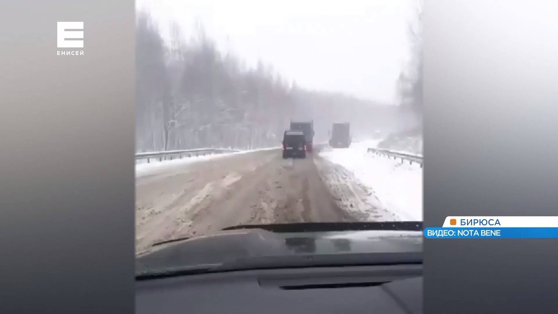 На трассах в Красноярском крае из-за снега и гололеда осложнено движение