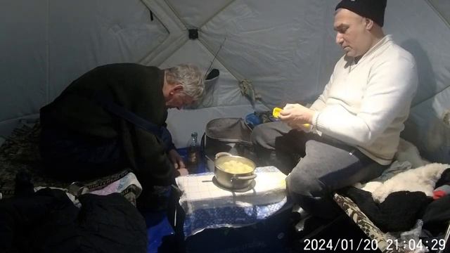 зимняя рыбалка на озере в компании с отцом.
