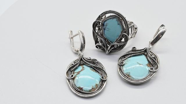 •Авторское украшение ручной работы. Камни установлены в оправу из ювелирного сплава - нейзильбер. •Форма и рисунок камня никогда не повторяются, что делает данное изделие единственным в своем роде. •Габарит кольца 22*26мм., серьги: 23*28мм., вес 10,1 г •Швензы изготовлены из серебра проба отсутствует. •Указаны габариты серьги без швензы. •На поверхности камня допустимо присутствие естественных природных прожилок и микротрещин. •При заказе вы покупаете образец, который представлен на фото. https://radugakamnya.ru/catalog/ukrasheniya_iz_kamnya_po_tipam/koltso_i_sergi_1/koltso_i_sergi_biryuza_razmer_18_5_1-634577/