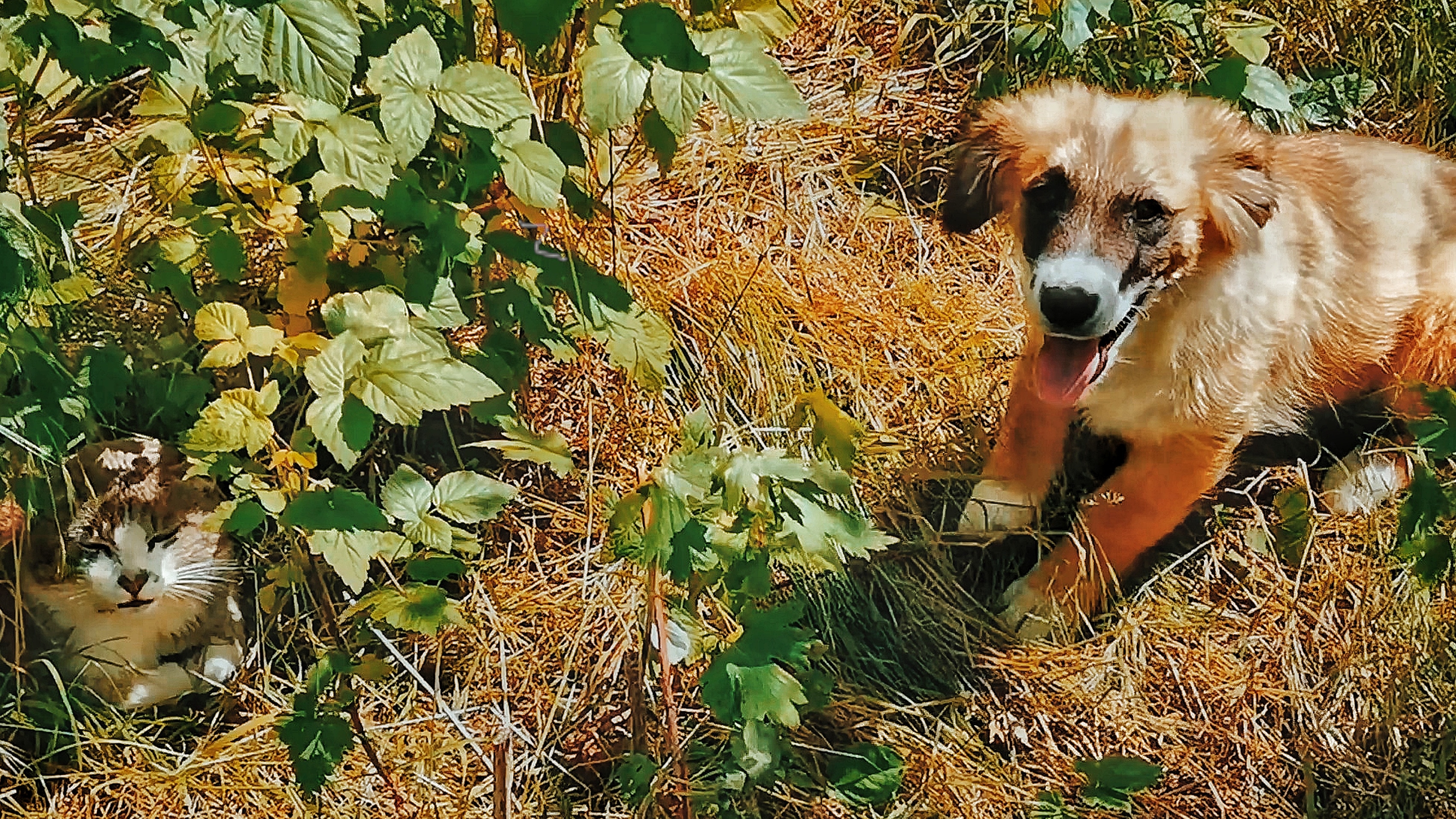Пёс и кот - лучшие друзья. В малине
