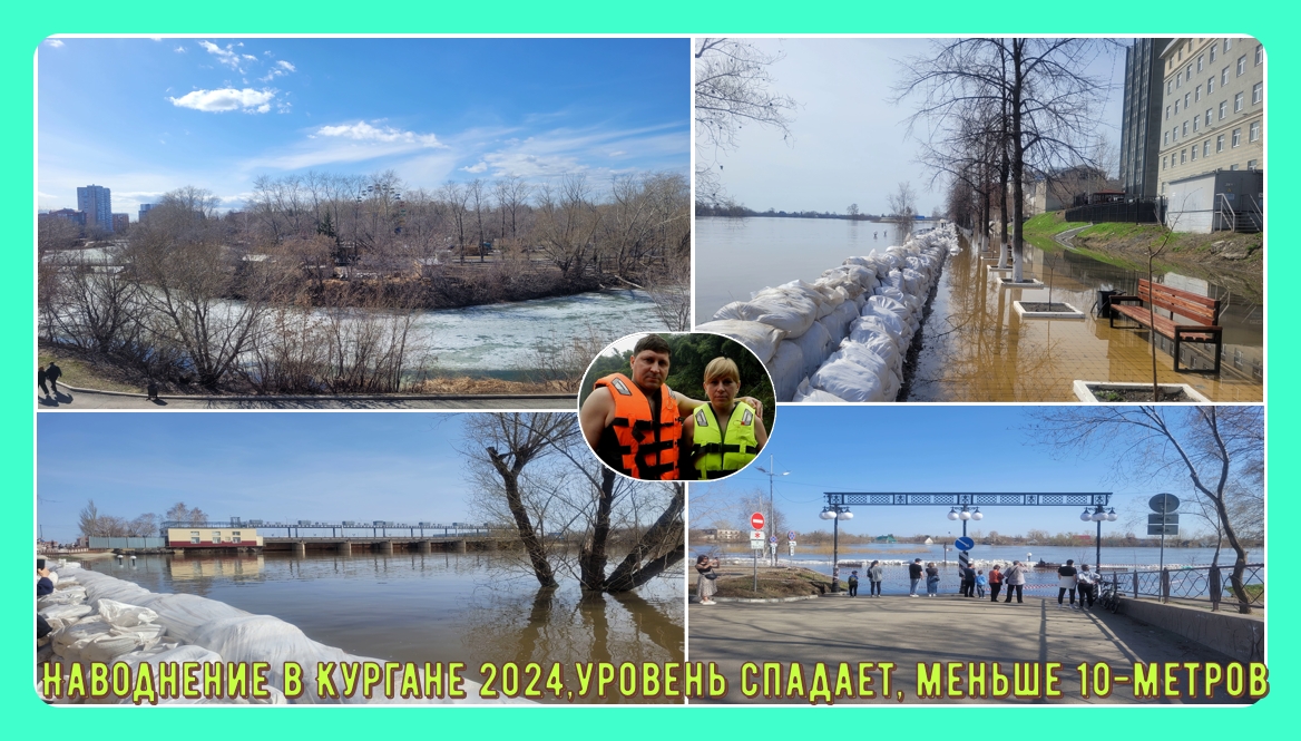 Наводнение в Кургане 2024,уровень спадает стал меньше 10-метров
