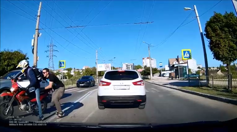 Машина столкнулась с велосипедистом, мимо ДТП проезжал мотоциклист, которого и схватил ошарашенный водитель, перепутавший его с велолюбителем.