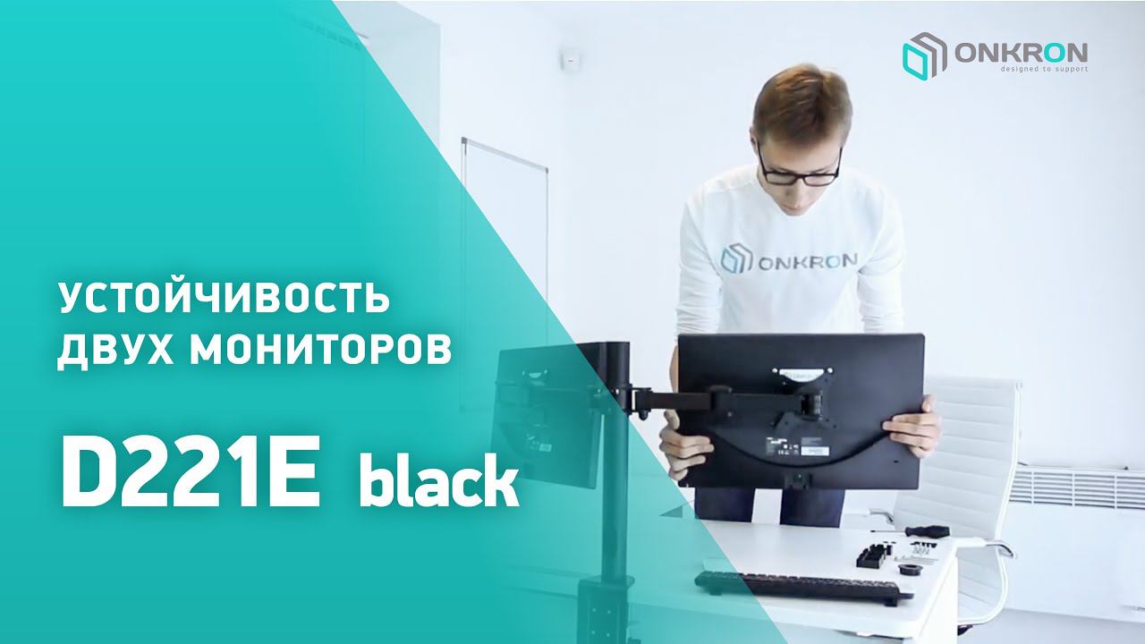 Широкий диапазон регулировки для всех установленных экранов: Угол наклона экрана от -85° до +90° Угол поворота вокруг основания 360° Регулируемое расстояние от основания от 0 до 385мм Скрытый кабель канал внутри основания позволит спрятать все провода, а специальные пластиковые фиксаторы на корпусе кронштейна обеспечат надежную поддержку и фиксацию. Надежное крепление на край стола или любую другую поверхность, шириной до 100 мм, благодаря струбцине. Такое крепление дает возможность перенести кронштейн с мониторами в любое место без особых усилий, а благодаря противоскользящим накладкам не оставит следов на поверхности. Регулировка по высоте с возможностью фиксации в диапазоне от 200 до 340 мм, благодаря механизму с защёлкой. Кронштейн изготовлен из высококачественной холоднокатаной стали (SPCC). Надежный материал и продуманная конструкция позволяет надёжно фиксировать любые телевизоры или мониторы весом до 10 кг каждый. Портретная и альбомная ориентация каждого из 2х установленных мониторов Все необходимые крепежные элементы и подробная инструкция входят в комплект с кронштейном Характеристики настольного кронштейна для двух мониторов KRON D221E: Установка: на краю стола Для экранов с диагональю 10"-32" каждый Максимальная нагрузка: 18кг (2х9кг) VESA: 75x75, 100x100мм Угол наклона: -85° ~ +90° Угол поворота: 360° Вылет от основания: 0~385мм Вертикальное перемещение: 200~340мм Портретная/альбомная ориентация экрана Нашу продукцию можно приобрести наиболее удобным для Вас способом на следующих ресурсах: OZON: https://www.ozon.ru/product/onkron-kronshteyn-dlya-dvuh-monitorov-13-32-nastolnyy-chernyy-d221e-podstavka-pod-monitor-2-po-8-kg-658942626/ Yandex Market: https://market.yandex.ru/store--onkron/product/461476395?businessId=687091&sku=100663028864 Wildberries: https://www.wildberries.ru/catalog/8037864/detail.aspx?targetUrl=GP Мегамаркет: https://megamarket.ru/catalog/details/kronshteyn-dlya-televizora-kron-d221e-chernyy-100023002082/ M.video: https://www.mvideo.ru/products/kronshtein-dlya-monitora-onkron-d221e-400052917 Магнит Маркет: https://mm.ru/product/kronshtejn-dlya-dvukh-2978283?skuId=8372128 Lemana Pro: https://spb.lemanapro.ru/brands/onkron Официальный сайт: https://shop.onkron.ru/product/onkron-kronshtejn-dlja-dvuh-monitorov-10-32-nastolnyj-chjornyj-d221e-new