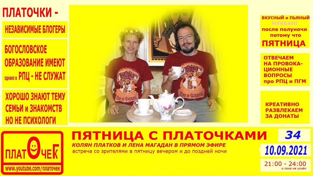 Говорим обо всём, расслабляемся, выполняем прикольные задания от зрителей за донат, отвечаем на провокационные вопросы про РПЦ и ПГМ (частное мнение светских людей с Богословским образованием) по теме "церковь и общество", "религия" и "религиозные заморочки". Весело проводим пятничный вечер. Донат: https://donationalerts.com/r/platochekg Наш ВК: https://vk.com/kolyanplatkov Дзен: https://zen.yandex.ru/platochek Инста: https://instagram.com/platochegk ТикТок: https://www.tiktok.com/@platocheg
