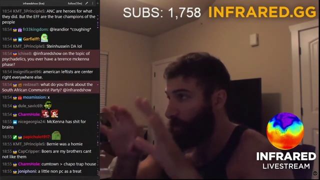 Хаз рассказывает о политическом влиянии на ранний коллектив Infrared, включая Джулиуса Малему и борцов за экономическую свободу в Южной Африке. Он также обсуждает сформировавшееся мнение Коллектива о Китае и их теорию о популистском антиимпериализме и политике Народного фронта.