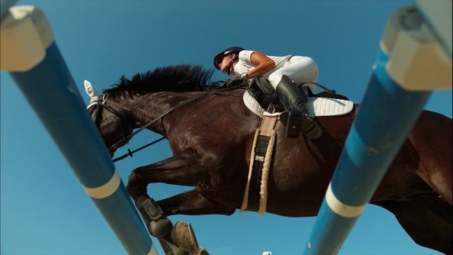Всадница на лошади берут препятствие