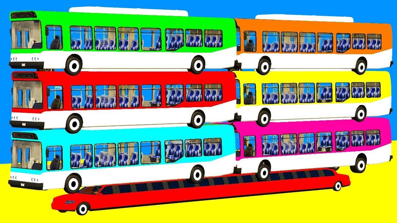 Цветные автобусы и длинная машина для малышей Мультфильм с автобусами и машинами Супергерои