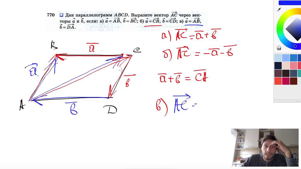 №770. Дан параллелограмм ABCD. Выразите вектор АС через векторы а и b , если: а) а=АВ, b=BC;б) а =СВ, b=CD; в) а =АВ, b = DA. Мой второй канал для подготовки к ЕГЭ и ОГЭ - https://www.youtube.com/ЕвгенийСумин Инстаграм - https://www.instagram.com/EGE_OGE.math Личный инстаграм - https://www.instagram.com/ee_sumin VK - https://vk.com/evgeniysumin FB - https://www.facebook.com/EvgeniySumin