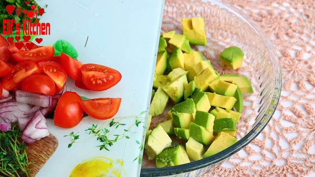 Guacamole Avocado Salad Recipe | Fresh and Healthy Salad Recipe Ingredients: 2 avocados 1 small red onion 12 cherry tomatoes Parsley 1 lemon 4 tablespoons olive oil (36grams) (0.0794lb) 1 teaspoon salt (3Gram) (0.0066lb)