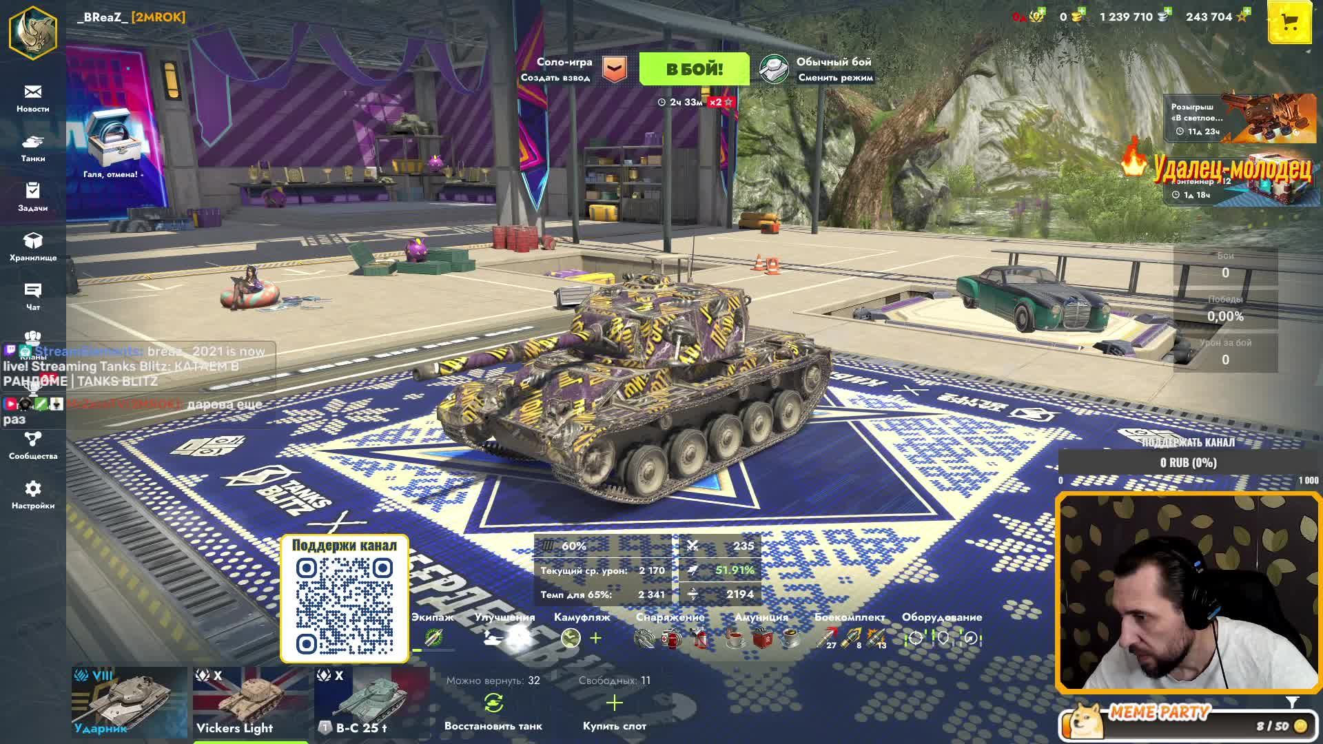 Приветствую всех, кто присоединился к каналу. Здесь мы за хорошее и приятное общение, ну и играем в Мир Танков Блиц 💵Донат — https://www.donationalerts.com/r/mahaonbreaz 💵Донатпэй - https://donatepay.ru/don/1434298 📺Прямые эфиры также на: 👉🏻VK Видео Live — https://live.vkvideo.ru/breaz_2021 👉🏻Trovo — https://trovo.live/s/Breaz_2021 👉🏻Twitch — https://www.twitch.tv/breaz_2021 Расписание стримов, новости, общение в группе Telegram: https://t.me/breaz_channel Отправить мем на стрим: Мемalerts - https://memealerts.com/Breaz_2021 Особое меню: ✅Заказать песню - 50₽ (или 200 ВКбаллов) ✅Заказать танк (5 боев) - 100₽ (или 1000 ВКбаллов) ✅Чек реплея (только Мастера) - 100₽ (или 1000 ВКбаллов) ✅Взвод вне очереди (3 боя) - 100₽ ✅Взвод на 30 минут - 200₽ (или 1000 ВКбаллов) ✅Дуэль 1 на 1 (3 боя) - 100₽ (или 1000 ВКбаллов)