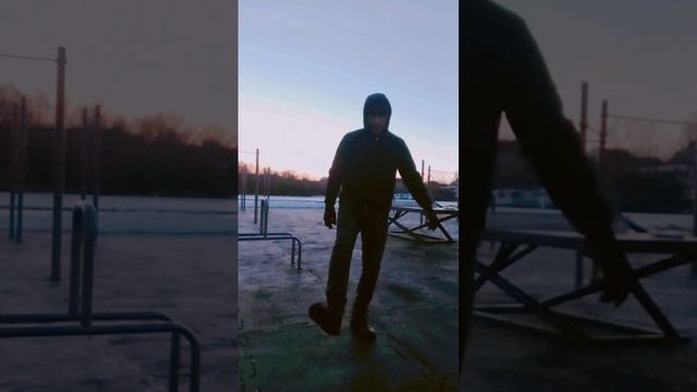 в конце уже светло утро спортплощадка. встреча рассвета. различные движения которые и летом. выполняю: кардио, суставные, растяжки и т.п. время занятий 24 минуты. 23.12.23