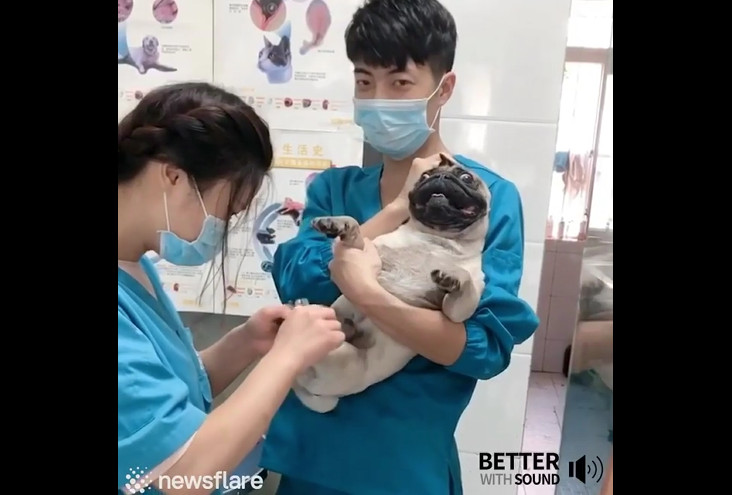 Пёс визжит,когда ветеринар стрижет ему ногти на лапах. #собака #прикол #визг #реакция