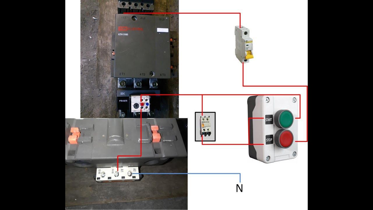 Подключение контактора через кнопки стоп пуск
