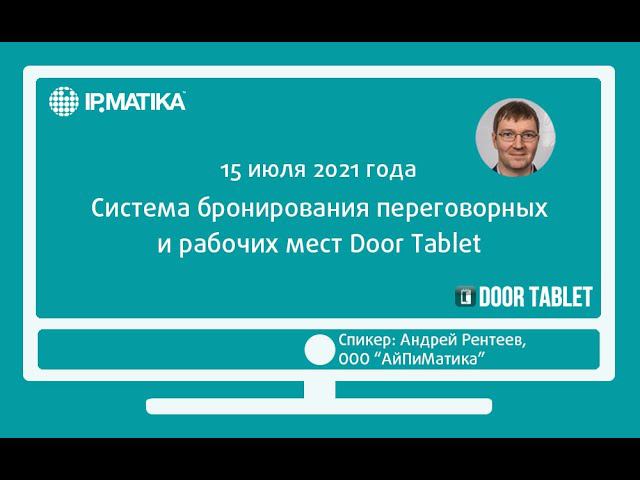 15 июля 2021 года продакт-менеджер компании АйПиМатика Андрей Рентеев провел вебинар "Система бронирования переговорных и рабочих мест Door Tablet". Сейчас многие организации задумываются о переходе на гибридный режим работы офиса. В ходе вебинара рассматривается программное обеспечение Door Tablet (Великобритания) — мирового лидера в сфере разработки систем бронирования помещений и рабочих мест, которое может значительно облегчить решение этой задачи. Door Tablet предлагает широкие возможности для интеграции и кастомизации интерфейса, сбора аналитики, отслеживания занятости рабочих мест и переговорных в режиме реального времени.