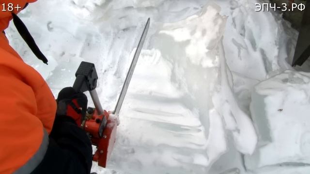 Пиление льда ЭПЧ-3. Ледяная глыба 300 кг!