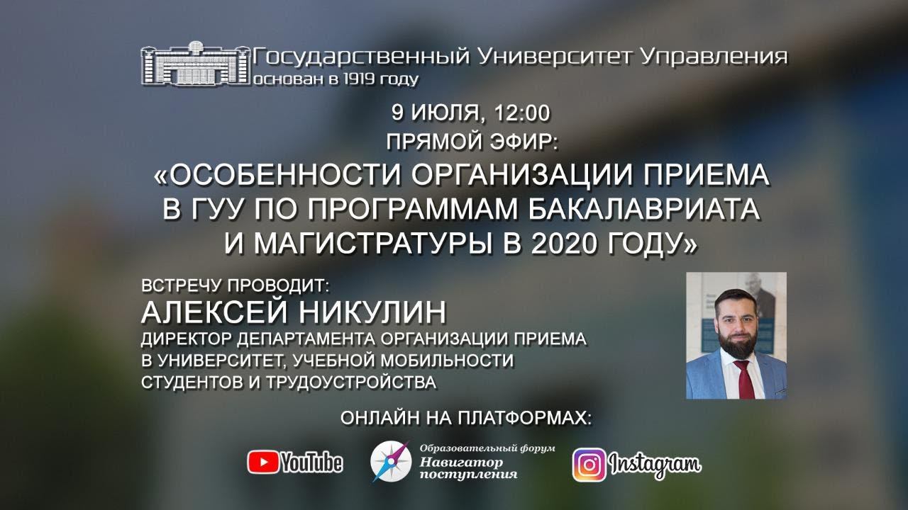 Особенности организации приема в ГУУ по программам бакалавриата и магистратуры в 2020 году.