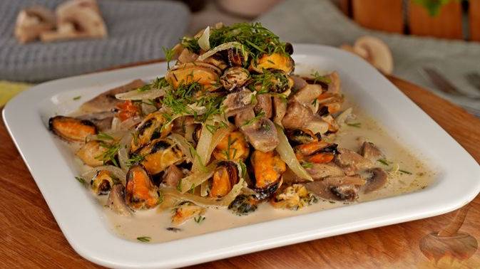 Шампиньоны прекрасно сочетаются с сочными мидиями, создавая гармонию вкусов. Тушатся мидии с грибами в сливочном соусе с добавлением чеснока и тимьяна, что придаёт блюду яркий и насыщенный акцент. #МидиивСоусе #МидиивСливочномсоусе #МидиинаСковороде #МидиисГрибами #ГрибывСливках