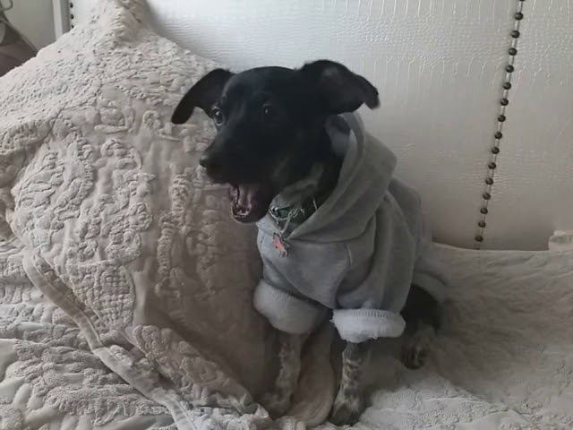 У собаки вдруг появились певчие таланты. Поет без умолку