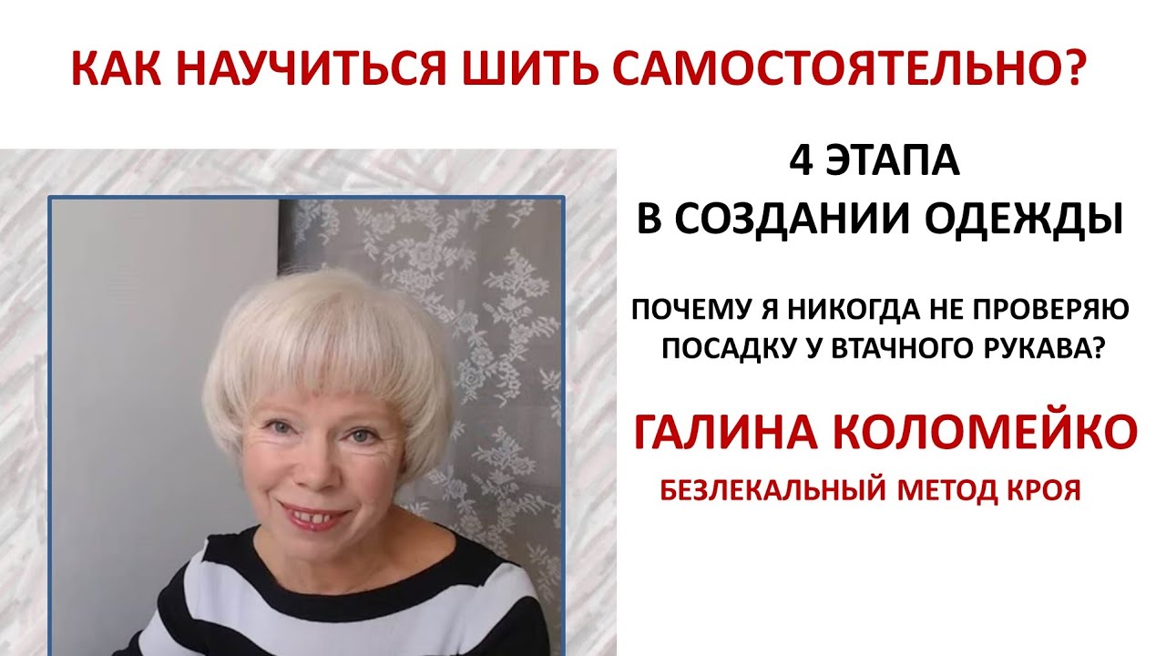 Сегодня на канале Галины Коломейко видео о том, как научиться шить правильно. В наши дни информации по крою и шитью так много, что для тех, кто хочет освоить это ремесло очень сложным является процесс выбора учителя, методики, системы кроя и технологии пошива. Сложно сориентироваться в этом изобилии информации. И поэтому, мне хочется вам помочь разложить всё по полочкам, чтобы процесс знакомства с темой не был таким мучительным. В этом видео речь идёт о 4 этапах в создании одежды. Это: изучение тела, построение базовой конструкции, моделирование и сам пошив. Последний 4й этап в свою очередь делится ещё на 12. Если вы эту систему примете, то время работы значительно сократится, а качество резко возрастёт! В процессе рассказа речь заходит о том, почему я никогда не измеряю длину проймы и не сопоставляю её с длиной оката рукава. Имеется в виду втачного. Этот вопрос часто звучит в ваших письмах. Посмотрите видео и там найдёте на него ответ. Приятного вам просмотра. Всегда ваша, Галина Коломейко. Видеошкола https://kolomejko.ru/land-videoschool Видеокнига Создаём вашу идеальную выкройку https://kolomejko.ru/books#!/tproduct/214180955-1497456130776 Видеокнига Раскрой сразу на ткани https://kolomejko.ru/podrobnosti-raskroj-na-tkani Видеокнига Шьём ваше плечевое изделие https://kolomejko.ru/more-book-plechevoe-izdelie Видеокнига Брюки конструирование https://kolomejko.ru/podrobnosti-bruki-konstruirovanie Видеокнига Брюки моделирование https://kolomejko.ru/podrobnosti-bruki-modelirovanie Видеокнига Брюки технология как скроить и сшить брюки https://kolomejko.ru/podrobnosti-book-bruki Видеокнига Современные мужские брюки https://kolomejko.ru/podrobnosti-muz-bruki-uzkie Видеокнига Мужские брюки большого размера https://kolomejko.ru/podrobnosti-bruki-muz-bolshoj-razmer Мой сайт https://kolomejko.ru Инстаграмм https://www.instagram.com/galinakolomejko Фейсбук https://www.facebook.com/galinakolomeyko Вконтакте https://vk.com/webinar_galina_kol Помощь каналу карта Сбербанка 4276 3801 2388 8401 Галина Леонидовна К.