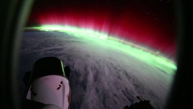 Международная космическая станция пролетает сквозь полярное сияние