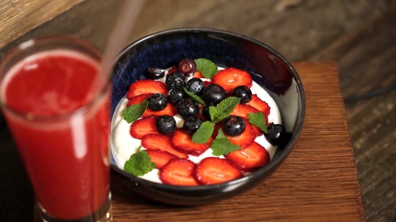 Белорусский завтрак из творога, который понравится всем - Творожный мусс с клубникой и голубикой и ягодный лимонад.