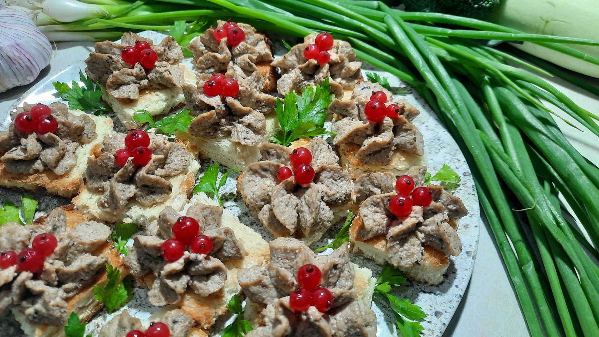 Нам понадобится: 1. Батон 2. Яйцо - 1шт. 3. Шпроты - 1 банка (160г) 4. Сыр твёрдый (любой) - 50г 5. Чеснок - 2 зубчика (один натереть хлеб, второй в паштет) 6. Майонез - по вкусу 7. Смородина красная и петрушка - для украшения - Нарезаем батон на небольшие канапе, поджариваем их в тостере или на сухой сковороде. - Солим зубчик чеснока и натираем им наши канапе. - Натираем яйцо, сыр. - Пробиваем блендером до однородности яйцо, шпроты, сыр. - Добавляем в массу натёртый зубчик чеснока, добавляем майонез, перемешиваем (я на видео не добавляла чеснок в паштет, но в следующий раз я обязательно добавлю. С ним будет вкуснее!!!). - Перекладываем паштет в кулинарный мешок и с помощью насадки красиво выкладываем его на наши канапе. - Украшаем смородиной и петрушкой. Наши канапе со шпротами, сыром и яйцом готовы!!! Получилась отличная и красивая закуска!!! Приятного аппетита!!!???