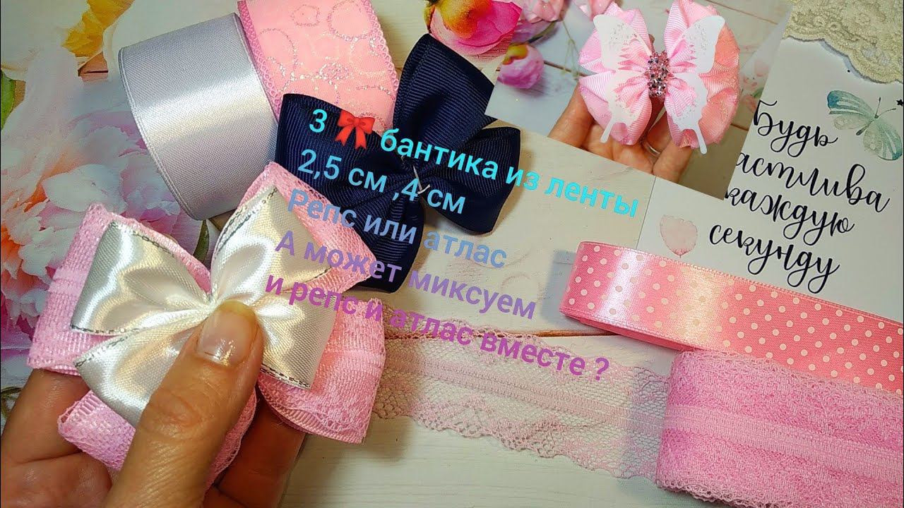 3 бантика,из ленты 2,5 и 4 см,Репс или атлас,а может миксуем репс и атлас вместе ,а как вам ?