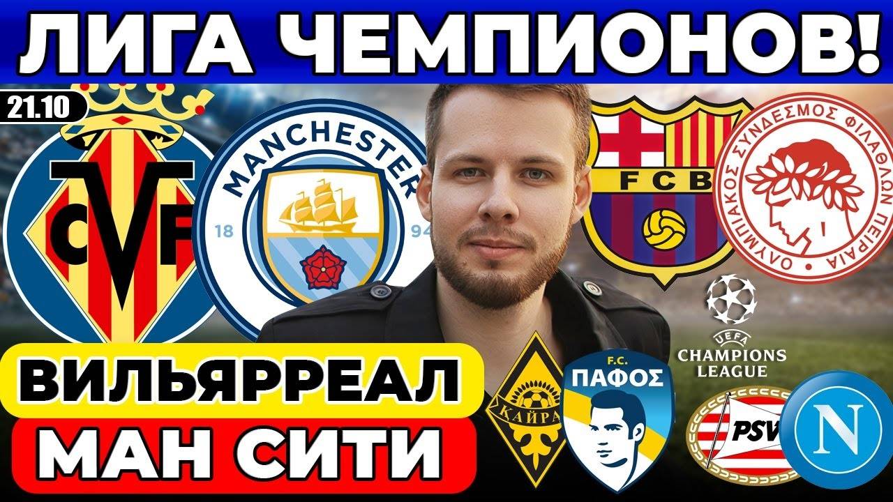 ВИЛЬЯРРЕАЛ МАНЧЕСТЕР СИТИ ПРОГНОЗ БАРСЕЛОНА ОЛИМПИАКОС ОБЗОР КАЙРАТ ПАФОС ПСВ НАПОЛИ ЛИГА ЧЕМПИОНОВ