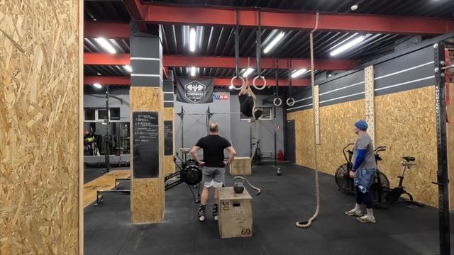 222 тренировка Комплекс На время, в парах*: 50/40/35 калорий гребля/лыжи 20 заходов 100 русских махов гирей 100 перешагиваний коробки с гирей 20 канатов 50/40/35 калорий гребля/лыжи Крышка: 25 минут *смена атлетов произвольно 20:15 делал в одного калории по 50 остальное пополам Комплекс Каждые 5 минут, 15-20 минут 20-30 калорий байк 15-30 выпады с гирями 16-24 кг 02:48 (время) 02:40 (время) 02:23 (время) 02:38 (время) Делал 20-20 гири 2х16