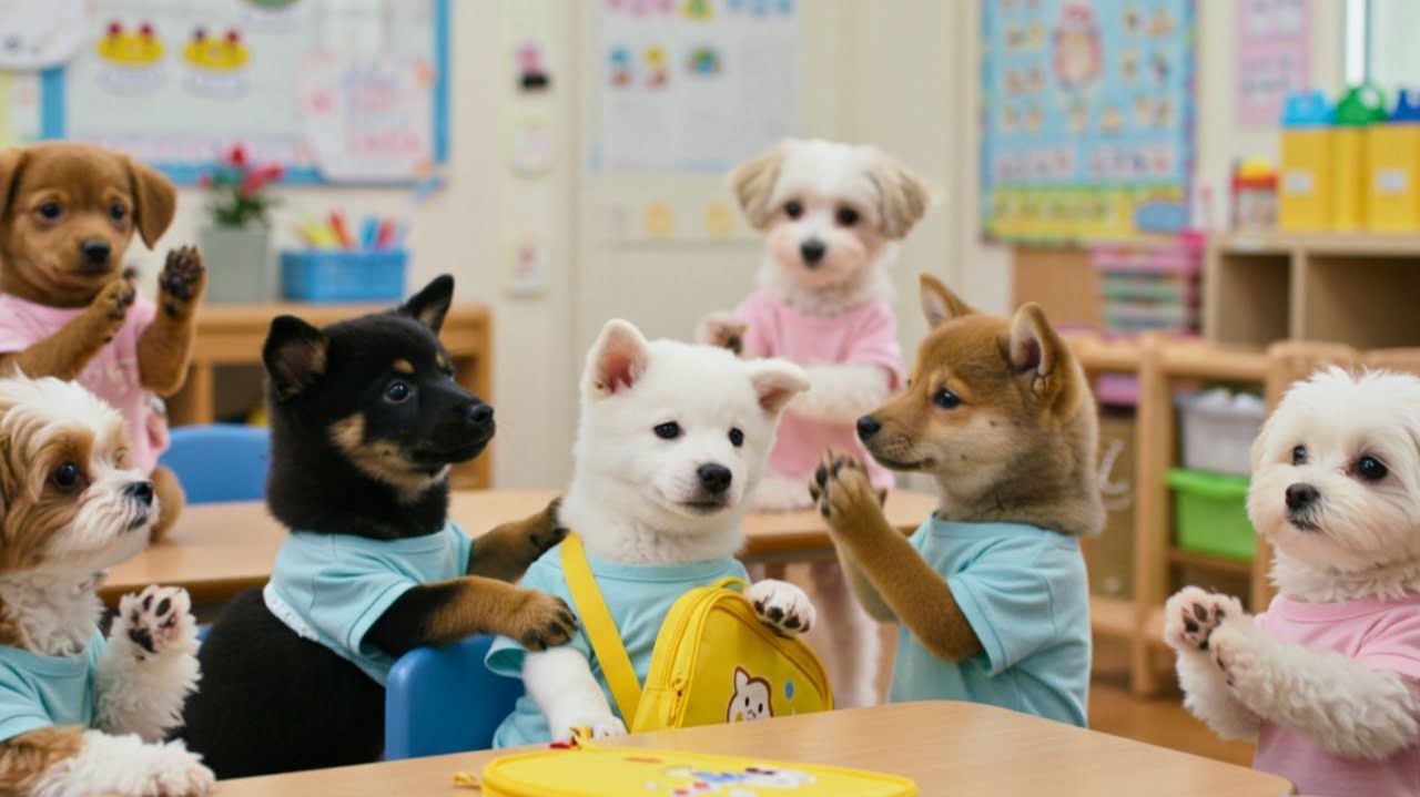 Первый день щенка чиндок в детском саду �