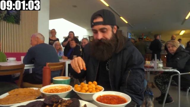 В этом выпуске мы попытаемся доказать неправоту несогласного пользователя Reddit, преодолев пока что непобедимый завтрак-челлендж на озере Вестпорт! Отважные любители всего жирного получают всего 30 МИНУТ, чтобы съесть шесть ломтиков бекона, шесть сосисок, шесть яиц, шесть кровяной колбасы, две большие порции грибов, одну миску фасоли, одну миску помидоров, одну миску картофельных шариков, шесть ломтиков тоста и шесть овсяных лепешек… плюс горячий напиток… Успейте вовремя, и обед стоимостью 25 фунтов стерлингов будет БЕСПЛАТНЫМ… плюс вы получите футболку победителя и место на его, пока еще пустой, стене славы!
