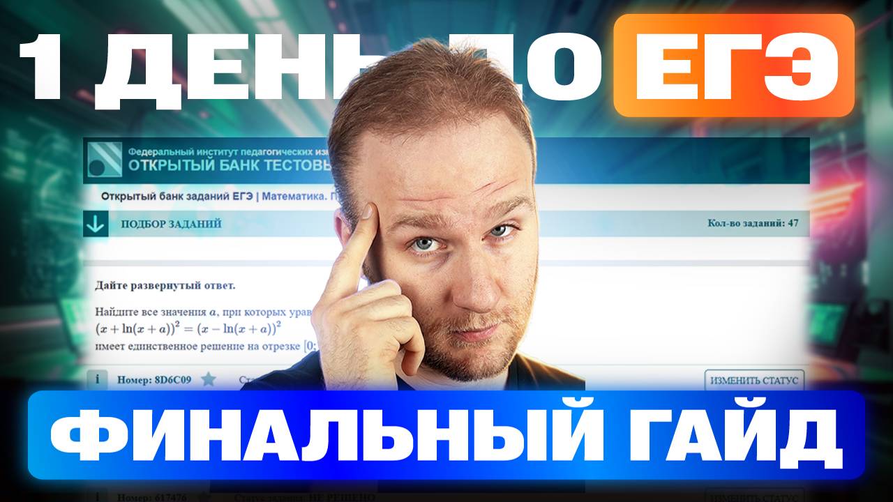 🤩 Приведи 5 десятиклассников и получи ДАЛЬНИЙ ВОСТОК НА ХАЛЯВУ: https://clck.ru/3MGoQQ 🤩 Все важные файлы в одном месте: https://clck.ru/3MGoNv 🤩 Разбор всей первой части: https://vkvideo.ru/video-193507941_456240977 🤩 Наш основной курс по подготовке к ЕГЭ 2025: https://clck.ru/3MGoGM 🤩 Бесплатные полезные материалы ждут Вас здесь: https://clck.ru/3MGoE6 Где нас ещё найти? TG: https://t.me/+eFpwTrxkTHQ5N2My VK: https://vk.com/profimatika Остались вопросы? Пишите их нам в TG: @profimatika_ask 00:00 - Вступление 00:48 - Порядок 01:38 - Шпаргалки 02:28 - Перепроверка 03:07 - Черновик 04:00 - Правдоподобие 04:30 - Сон 05:15 - Повтор 06:00 - Напутствие #математика #егэ #профильнаяматематика #решуегэ #мцко #11класс #егэ2025 #профильматематика #2025 #дви #учитель #экзамен