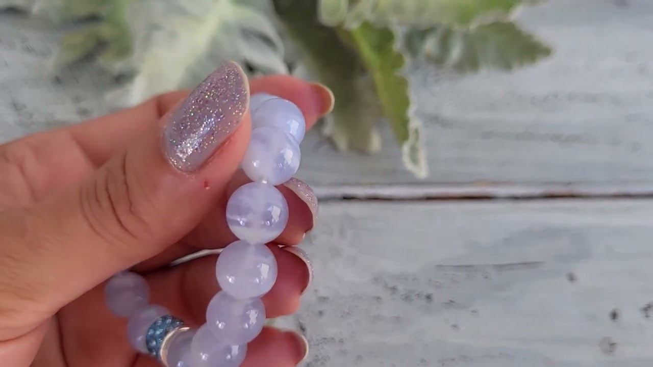 Браслеты украшения из натуральных камней. Браслет из сапфирина (голубого агата) с фурнитурой: сапфирин (голубой агат) шарик 10 мм., фурнитура люкс, длина 18 см. (на запястье 15-17 см.).