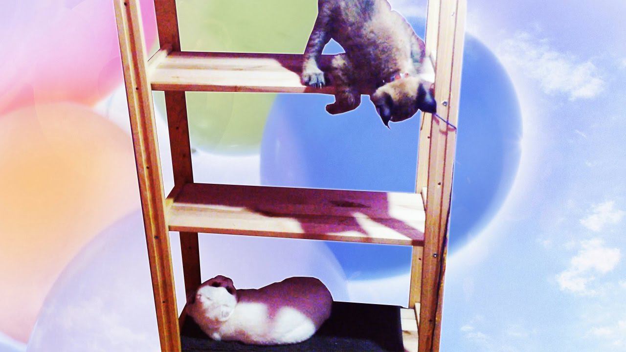 Рысёнок залез на высокую полку и не может с неё слезть. Очень милое видео ))
