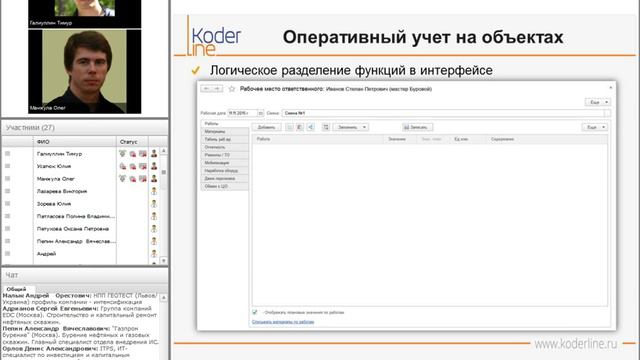 Вебинар "Бюджетное планирование и оперативный учет буровых и нефтесервисных компаний с использованием решения "Управление проектами строительства скважин" на базе 1С:ERP 2.0" Ведущие: Тимур ГАЛИУЛЛИН – консультант, аналитик, разработчик с 10-летним опытом. Принимал участие во многих проектах автоматизации нефтесервисных компаний на базе платформы 1С. Специализируется на блоке нормативного планирования строительства скважин. Олег МАНЖУЛА – консультант, аналитик, методолог с 14-летним опытом разработки и внедрения учетных систем на базе платформы 1С. Специализируется на блоках оперативного учета, транспортной и складской логистики. На вебинаре рассмотрели разработку, которая представляет интерес для компаний, занимающихся проектированием скважин, их строительством и/или обслуживанием, испытанием, капитальным ремонтом скважин. Вебинар будет интересен руководителям предприятий, финансовым руководителям, руководителям ИТ-отделов.