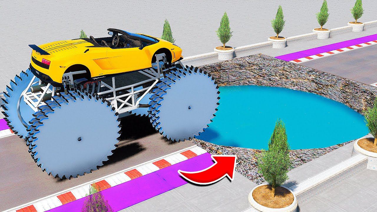 СМОЖЕТ ЛИ ГИГАНТСКАЯ ЛАМБОРГИНИ С ПИЛАМИ ПРОЕХАТЬ ГЛУБОКУЮ ЯМУ С ВОДОЙ В ГТА 5 - ЭКСПЕРИМЕНТЫ GTA 5