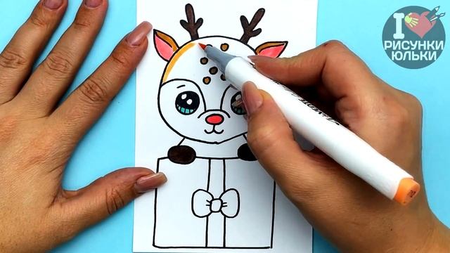 Как нарисовать Олененка в Новогоднем Подарке | Рисунок на Новый Год 2023