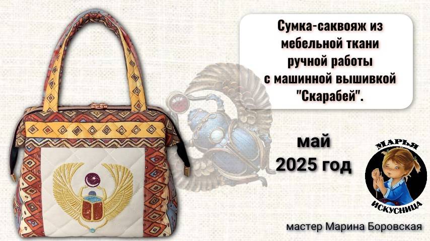 Сумка-саквояж ручной работы из мебельной ткани с машинной вышивкой.