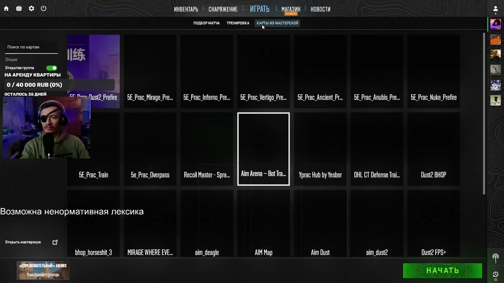 Одноглазый играет в CS 2 counter strike 2 online