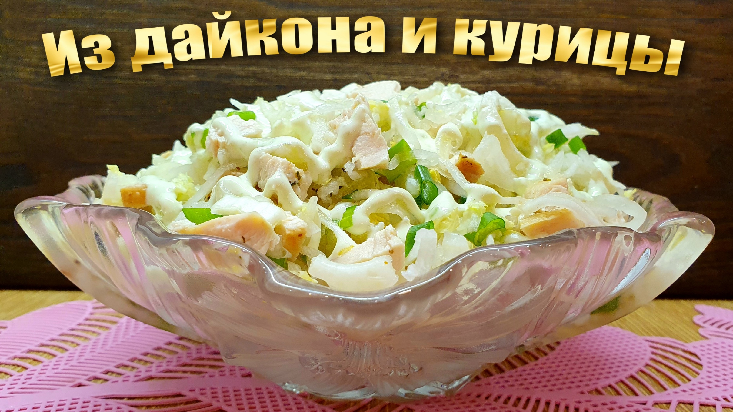 Рецепт простого и вкусного салата с куриной грудкой и дайконом (японской редькой). Ингредиенты: - Дайкон ... 290 г - Куриная грудка ... 270 г - Пекинская капуста ... 220 г - Зеленый лук ... 35 г - Прованские травы - Сметана 20% ... 80 г - Майонез ... 80 г - Васаби - Соль З салата из дайкона https://dzen.ru/video/watch/63682e0cbbe3222174c67c09 Салат из дайкона с говядиной https://dzen.ru/video/watch/636c12537d09ee0d49d02868 3 закуски из дайкона https://dzen.ru/video/watch/63780875505cd7425c0e1626 Домашний майонез с лимонным соком https://dzen.ru/video/watch/5f24fc29f2ece40836c812b7 #ШуршуПоДому Использован музыкальный трек "RKVC - Inevitable Hope" на основании лицензии Creative Commons Attribution 4.0 (https://creativecommons.org/licenses/by/4.0/)