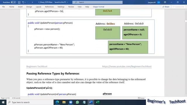 This video explains the following: Assigning Reference type Variable to another Variable Passing Reference type Variable by Value to method parameters Passing Reference type Variable by Reference to method parameters This video answers the following questions: How to Pass Variables by Reference to method parameters? How to Pass Variables by Value to method parameters? What is Value type and reference type? What are Value types and reference types? Chapters: 00:00 Start 00:06 Assign a Reference Type variable 06:00 Passing Reference Types by Value 20:22 Passing Reference Types by Reference 24:00 Sample Program for Pass by Value 31:40 Sample Program for Pass by Reference .Net | Object Oriented Programming (OOP) | Detail explanation for Students & Beginners | C# Easy Tutorials | C# Best Tutorials for Students & Beginners | C# Quick Tutorials for Students & Beginners | Step by step explanation of coding | Step by step explanation of Programming | Explained with Simple Examples
