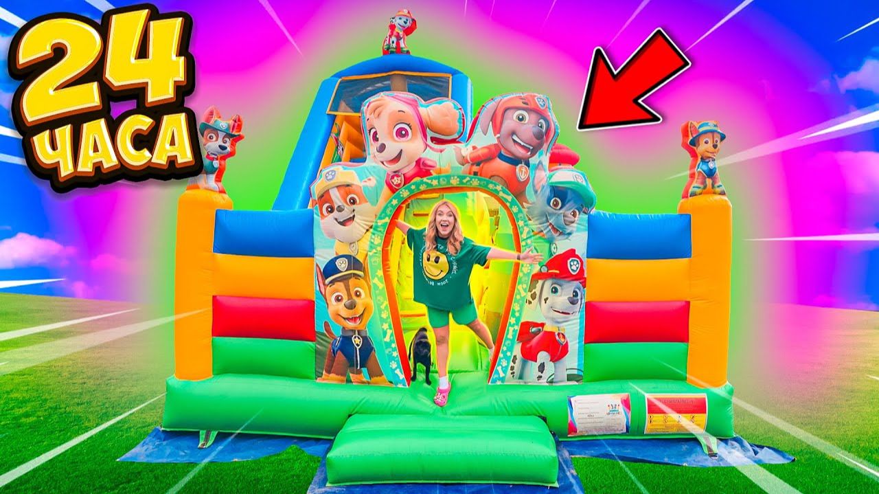 24 ЧАСА В ГИГАНТСКОМ НАДУВНОМ БАТУТЕ🏡 Ночь На Улице Челлендж!