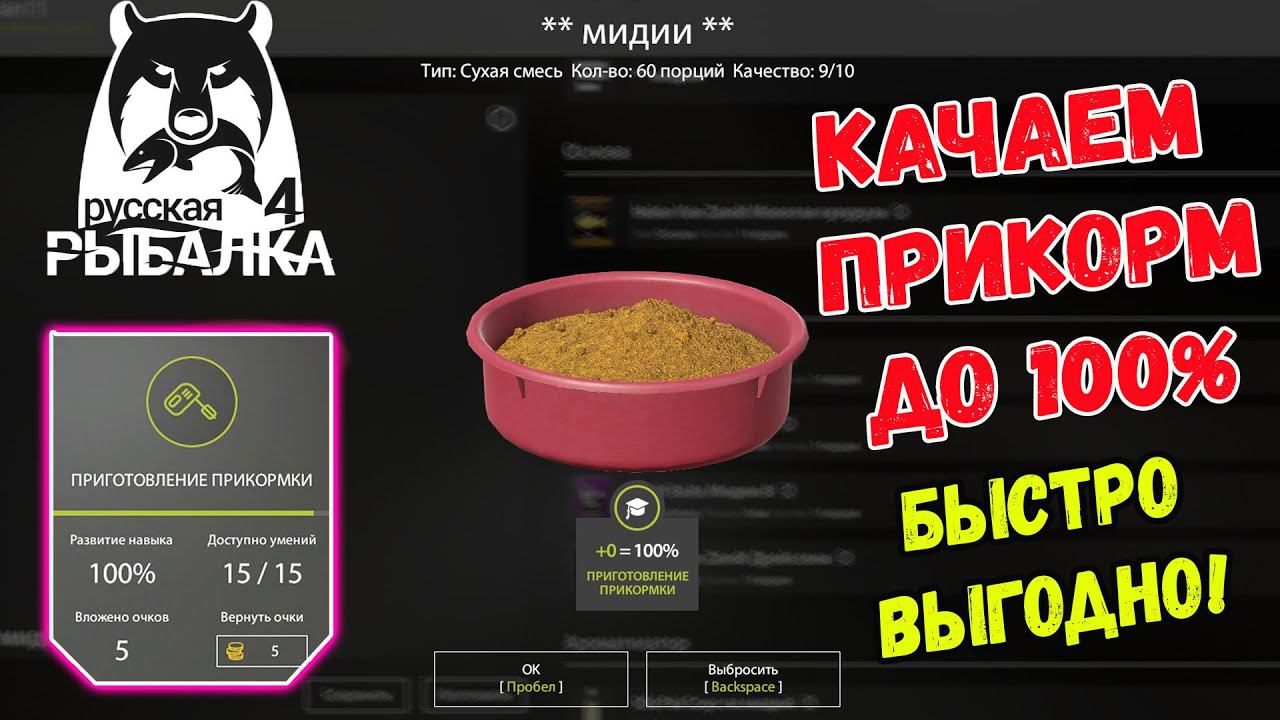 КАК ВЫГОДНО И БЫСТРО ПРОКАЧАТЬ ПРИКОРМ ДО 100% В РУССКОЙ РЫБАЛКЕ