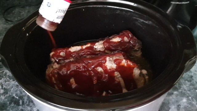 An easy crockpot BBQ double glazed recipe. You are going to like this slow cooker ribs! #crockpot #slowcooker #ribs