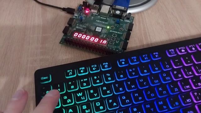 Подключил клавиатуру через usb порт на плате Nexus A7. Вывожу полученные кода на семисегментник. #vivado #FPGA #verilog