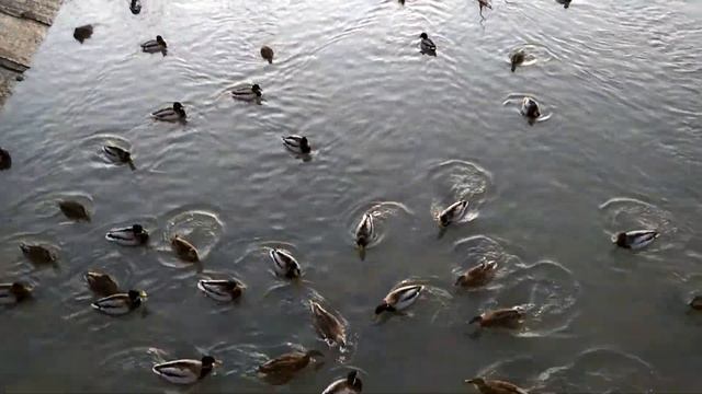 На реке Кончура в центре города Сергиев Посад зимует большая стая диких уток. Видео снято на камеру смартфона Alcatel IDOL 4. _______________________________________