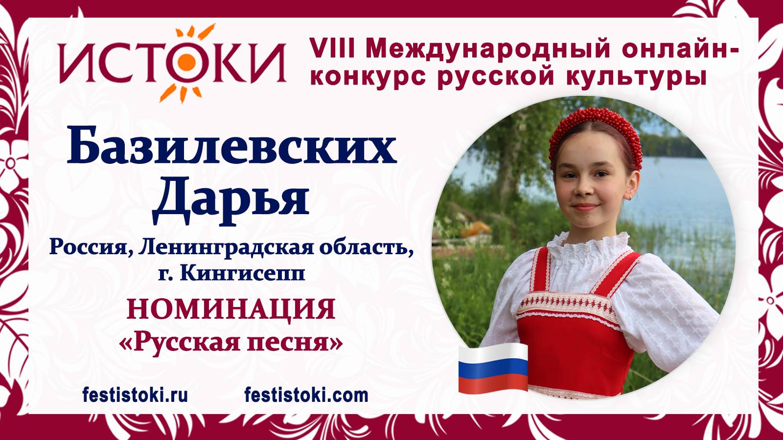 Участник VIII Международного онлайн-конкурса русской культуры "Истоки". Номинация "Русская песня". Песня "Ой, грибы-грибочки". Авторы слов и музыки - П. Черняев и В. Темнов. Сайт: festistoki.ru / festistoki.com E-mail: festistoki@mail.ru
