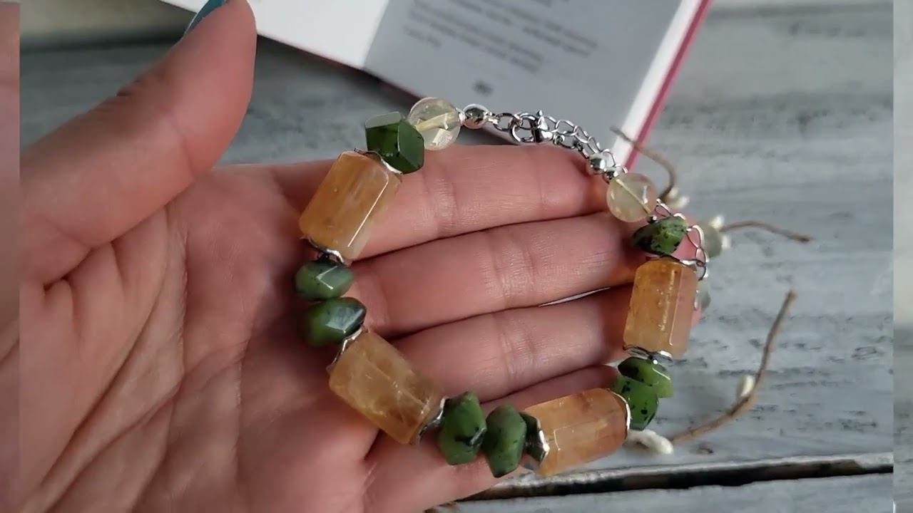 Комплект украшений из натуральных камней. Браслет, серьги из нефрита, цитрина: нефрит кубик с гранями 7х10 мм., цитрина цилиндр с гранями 12х17 мм, фурнитура люкс. Браслет длина 20-26 см. (на запястье от 16 см.), серьги швензы с родиевым покрытием, длина до швензы 50 мм., вес пары 20 гр. купить украшения можно в нашем магазине https://www.livemaster.ru/samotsvety-ot-granat-mk?view=profile