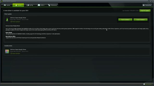 Whats up everyone! This is Nvidia latest driver release that was released yesterday and it emphasizes on Battlefield: Hardline and the latest GPU release (GTX Titan X). If you have preorded or are looking to order this game then please update to this driver in order to achieve the maximum from your game on release date. It also has a unique 1 click optimization feature which will help optimize your game if you have a Mid-Range GPU or lower in order to get stable frames throughout your experience on BFHL. ***************************************************************************** What’s New in Version 347.88 Just in time for the highly anticipated title Battlefield Hardline, this new GeForce Game Ready driver ensures you'll have the best possible gaming experience. With support from GeForce SLI technology and one-click game setting optimizations within GeForce Experience, you’ll have the best possible performance and image quality during gameplay. In addition, this driver is aligned with today’s launch of the world’s fastest gaming GPU: the GeForce GTX Titan X. Game Ready Best gaming experience for Battlefield Hardline, including support for SLI Technology and GeForce Experience one-click optimizations. New GeForce GPU Supports the new GeForce GTX Titan X, based upon the second-generation Maxwell architecture. Application Profiles Added or updated the following SLI profiles: • Life is Strange - Added DX9 SLI • Medieval Engineers - Added DX11 SLI • NASCAR ’14 - Added Single-SLI • Trine 3 - Added DX9 SLI • Zombie Army Trilogy - Added DX11 SLI Software Modules • HD Audio Driver - version 1.3.33.0 • NVIDIA PhysX System Software - version 9.14.0702 • GeForce Experience - 17.12.8.0 • CUDA - version 7.0 Changes and Fixed Issues in Version 347.88 The following sections list the important changes and the most common issues resolved since version 347.52. This list is only a subset of the total number of changes made in this driver version. Windows Vista/Windows 7/Windows 8/Windows 8.1 Fixed Issues GeForce Experience 2.2.2: “Unable to apply optimal settings” error message. ************************************************************************* If you are on XBOX ONE and want to get Battlefield Hard-line Half Price (£28.28 + 10% Discount if on EA Access) then follow this link here and do the following: LINK: http://adf.ly/1ANCpY - Go in to your console settings, change your region to Hungary and reboot your console. - Go in to the store and setup a new payment card or use a prepaid gift card. - Set the card address to a Hungarian address (google one). Note: I will be making a video on this soon to demonstrate this in real time ************************************************************************* Thank you for watching and I hope you guys learn/enjoy this.. Please Make sure to subscribe, share, like and comment. DIRECT LINK TO MY CHANNEL: youtube.com/c/ManiSuReal DIRECT LINK TO MY GOOGLE: google.com/+ManiSuReal *************************************************************************